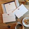 Presented in an elegant burgundy gift box, every set also includes 18 coordinated 120gsm peel and seal envelopes where the charming robin illustration adds a memorable flourish to all your correspondence.